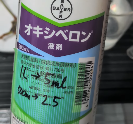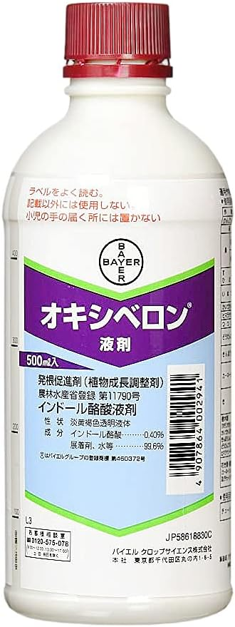 オキシベロンとは、バイエルクロップサイエンスが販売する植物成長調整剤で、主にさし木の発根を促進する効果があります。インドール酪酸を主成分とし、発根を早めて根の数を増やすことで、より多くの良い苗を育てることができます。水で希釈して使用し、一度に多量のさし穂を処理できるという特徴があります。