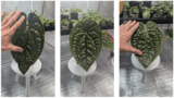 この植物は、湿気が多く、日当たりの少ない熱帯雨林に自生しています。その環境に適応するため、葉の表面に凹凸を作り、光を効率的に吸収できるよう進化しました。また、葉の質感は水をはじく役割も果たしています。凹凸が水の通り道を作り、葉が早く乾くようにしているのです。